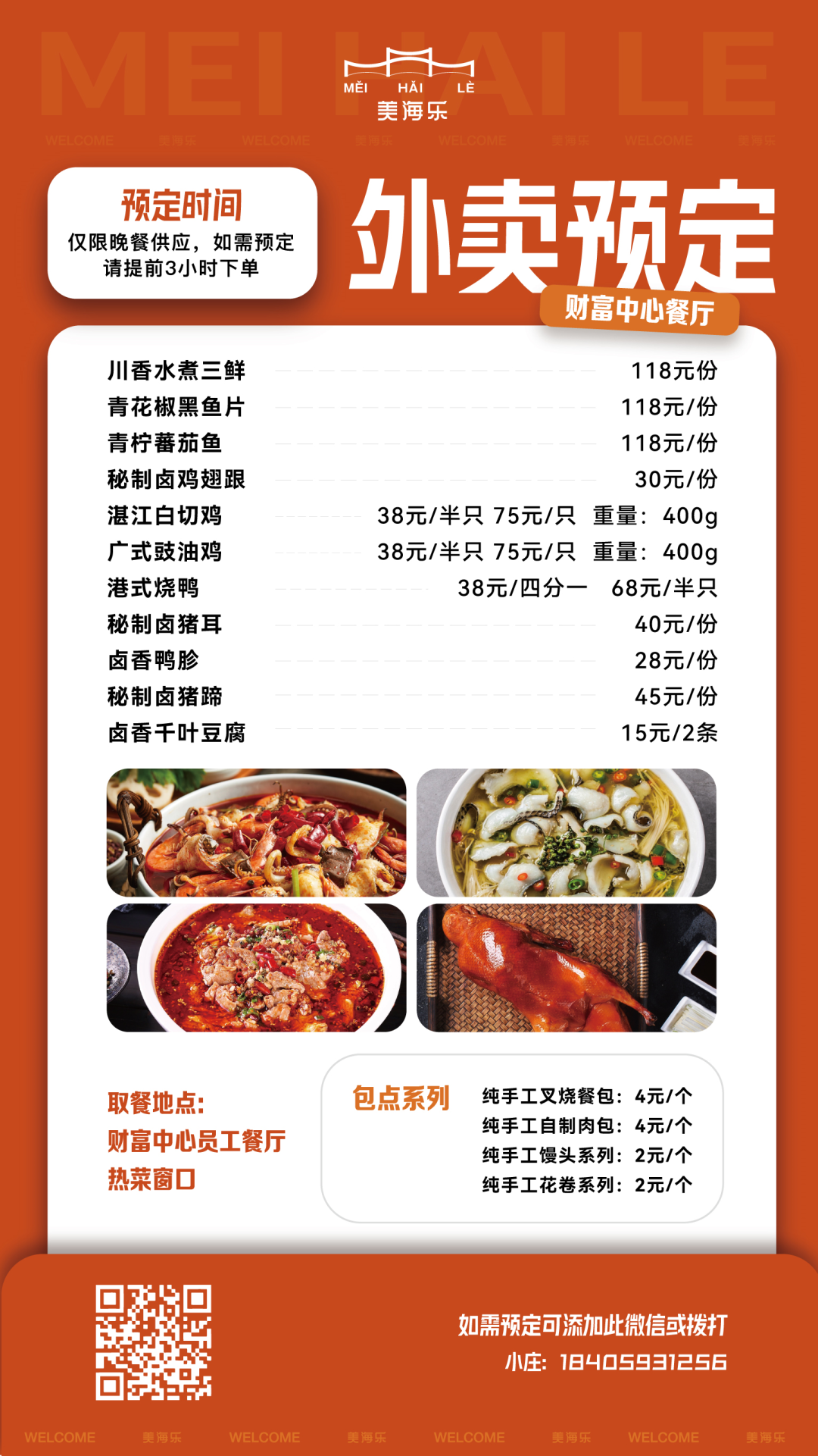美海乐此次提供外卖服务 初衷是为员工及员工家庭提供 更省时、更安全、更方便的就餐服务 解决员工的加班餐问题 以及部分员工家庭 日常照顾老人、孩子的难题 员工可在当天下午进行预订 预订成功后于当日晚餐时间点 在财富中心员工餐厅热菜窗口 领取并核销预订的餐点